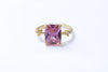 Anillo para mujer con zirconia rosa cuadrada de gran tamaño, elaborado en chapa de oro. Protagonista y elegante