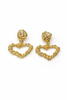 Aretes colgantes con corazón texturizado, fabricados en chapa de oro 18K, románticos y elegantes.