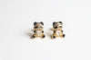 Broquel con diseño de panda y zirconia en forma de corazón, elaborado en chapa de oro 18K, ideal para un toque tierno y brillante.