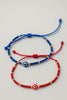 Pulsera tejida en hilo con el icónico ojo turco como amuleto protector, adornada con delicadas cuentas doradas que añaden elegancia y brillo.