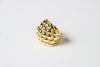 Anillo dorado con textura circular. Diseño moderno y sobrio.