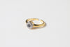 Anillo de chapa de oro con flor negra decorada con zirconias, elegante y ajustable. Ideal para lucir sofisticada.