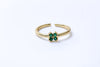 Anillo para mujer con trébol y zirconia verde, elaborado en chapa de oro. Símbolo de buena suerte.